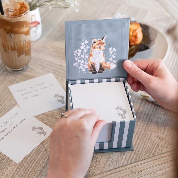 Een onmisbare factor voor elk bureau, dit memoblok met ons prachtige ‘Snug as a Cub’ vosontwerp bevat 450 vellen kwaliteitsnotitiepapieren voor al je notities en kleine herinneringen. Elk notitiepapier is geïllustreerd en het blok heeft een mooie textuurachtige uitstraling. Meet 4,5 x 4,4 x 3 inch.